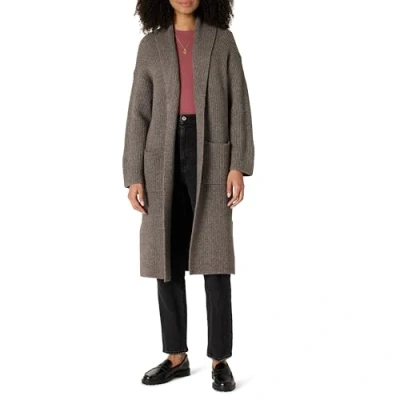 Amazon Essentials Women's Oversized Fit Cotton Blend Heavyweight Texture Stitch Long Cardigan Sweater, Brown Heather, XXS