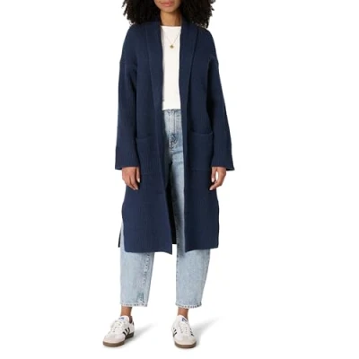 Amazon Essentials Women's Oversized Fit Cotton Blend Heavyweight Texture Stitch Long Cardigan Sweater, Navy, XXS