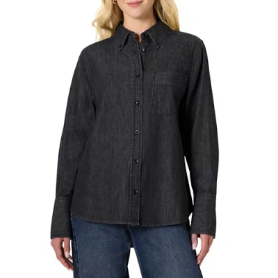 Amazon Essentials Women's Oversized Fit Denim Button Down Shirt, Black, S