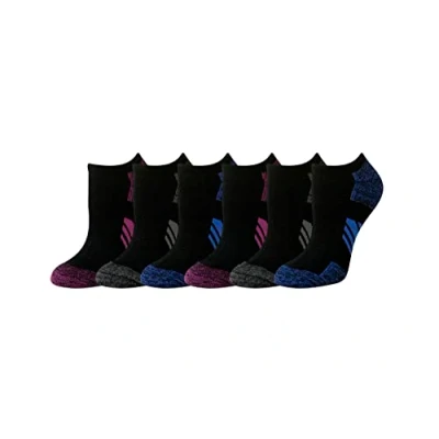 Amazon Essentials Women's Performance Comfortable Cotton Cushioned Breathable Athletic No Show Sports Socks, 6 Pairs, Black, 3 7