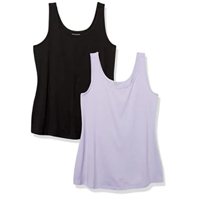Amazon Essentials Women's Plus Size Tank Top, Pack of 2, Black/Lavender, 6XL