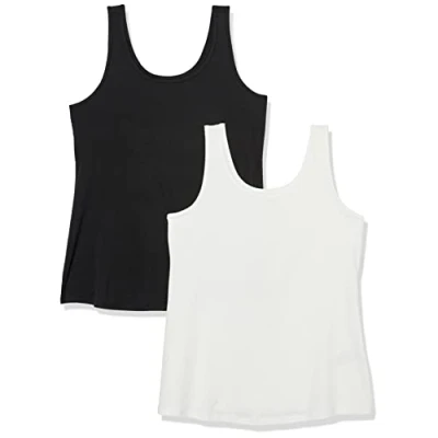 Amazon Essentials Women's Plus Size Tank Top, Pack of 2, Black/White, XXL
