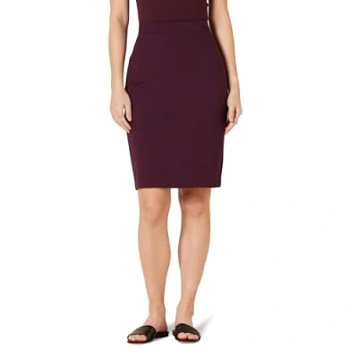 Amazon Essentials Women's Ponte Pull on Above The Knee Fitted Pencil Skirt, Burgundy, XS