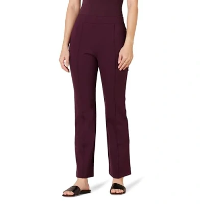 Amazon Essentials Women's Ponte Pull On Mid Rise Ankle Length Trousers, Burgundy, L