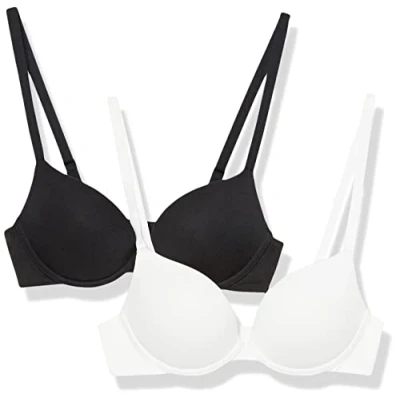 Amazon Essentials Women's Push Up Cotton Bra, Pack of 2, Black/White, 38A