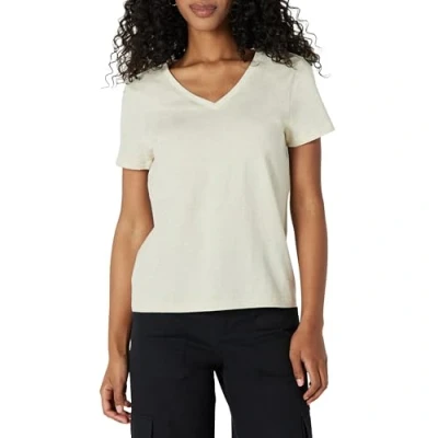 Amazon Essentials Women's Regular Fit 100% Cotton Short Sleeve V Neck T Shirt, Sand Heather, XXS