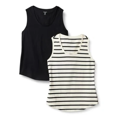 Amazon Essentials Women's Regular Fit 100% Cotton Sleeveless Tank Top, Pack of 2, Black/Mariner Stripes, S