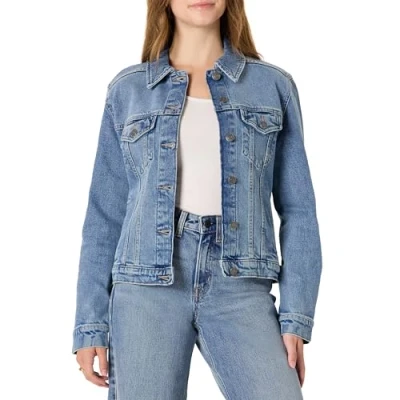 Amazon Essentials Women's Regular Fit Low Stretch Denim Button Front Trucker Jacket, Authentic Medium Wash, S