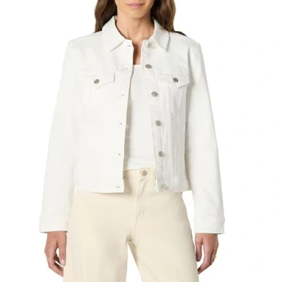 Amazon Essentials Women's Regular Fit Low Stretch Denim Button Front Trucker Jacket, White, S