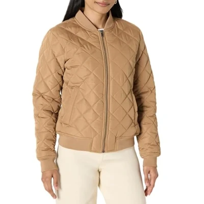 Amazon Essentials Women's Regular Fit Quilted Bomber Jacket, Camel, XXL