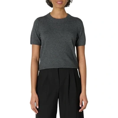 Amazon Essentials Women's Regular Fit Short Sleeve Pullover Sweater Top, Charcoal Heather, S