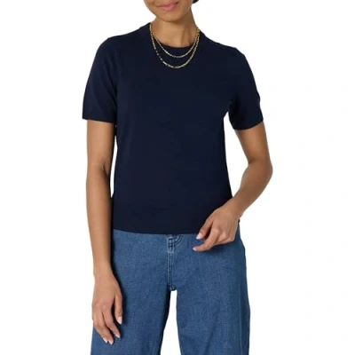 Amazon Essentials Women's Regular Fit Short Sleeve Pullover Sweater Top, Navy, XL