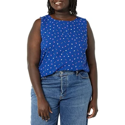 Amazon Essentials Women's Regular Fit Sleeveless Crew Neck Layering Tank Top, Bright Blue Ditsy Floral, M