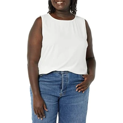 Amazon Essentials Women's Regular Fit Sleeveless Crew Neck Layering Tank Top, Ivory, S