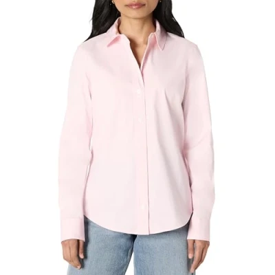 Amazon Essentials Women's Regular Fit Stretch Poplin Button Down Dress Shirt, Light Pink, S