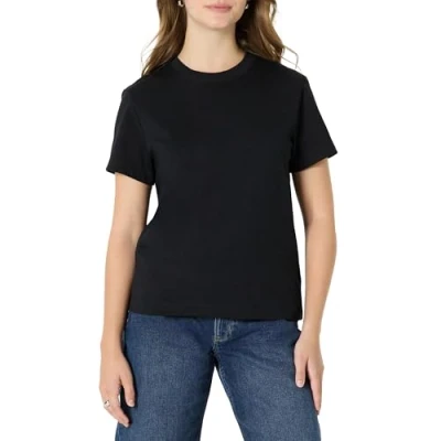 Amazon Essentials Women's Relaxed Fit Cotton Crewneck T Shirt, Black, S