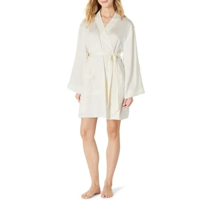Amazon Essentials Women's Relaxed Fit Satin Sleep Robe, Ivory, XXL