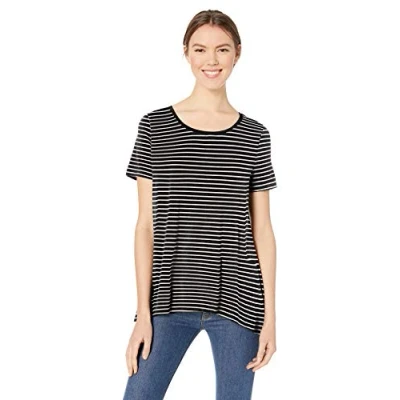 Amazon Essentials Women's Relaxed Fit Short Sleeved Scoopneck Swing T Shirt (Available in Plus Size), Black Stripes, S