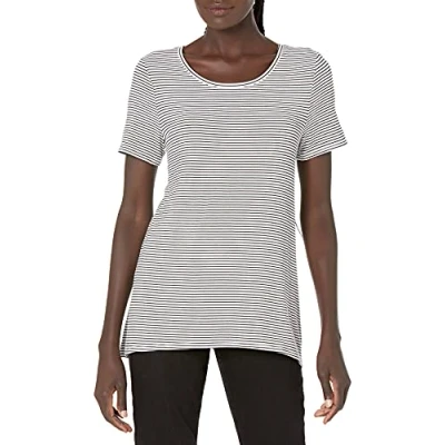 Amazon Essentials Women's Relaxed Fit Short Sleeved Scoopneck Swing T Shirt (Available in Plus Size), Black White Thin Stripe, M