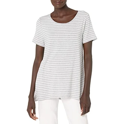 Amazon Essentials Women's Relaxed Fit Short Sleeved Scoopneck Swing T Shirt (Available in Plus Size), Grey Heather Stripes, XL