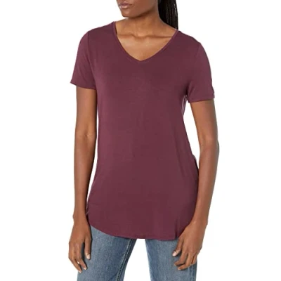 Amazon Essentials Women's Relaxed Fit Short Sleeved V Neck Tunic (Available in Plus Size), Burgundy, L