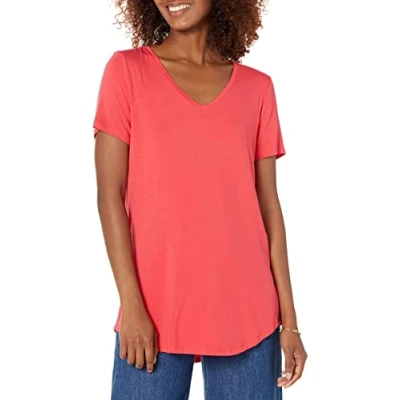 Amazon Essentials Women's Relaxed Fit Short Sleeved V Neck Tunic (Available in Plus Size), Red, XL
