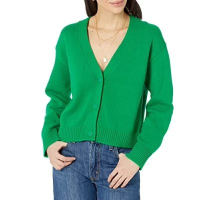 Amazon Essentials Women's Relaxed Fit V Neck Cropped Cardigan, Green, S