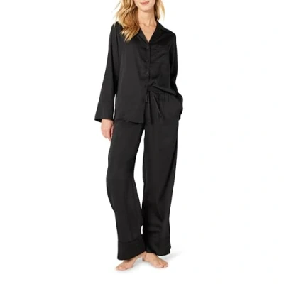 Amazon Essentials Women's Satin Pyjama Shirt and Bottoms Set, Black, S