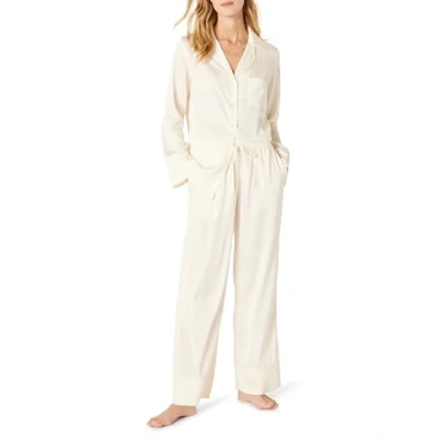 Amazon Essentials Women's Satin Pyjama Shirt and Bottoms Set, Ivory, S