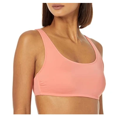 Amazon Essentials Women's Scoop Neck Swim Crop Top, Coral Pink, 10