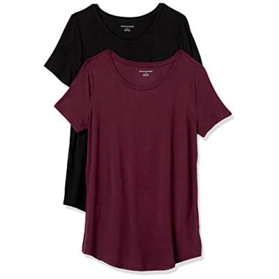 Amazon Essentials Women's Short Sleeve Scoopneck Tunic, Pack of 2, Black/Burgundy, S