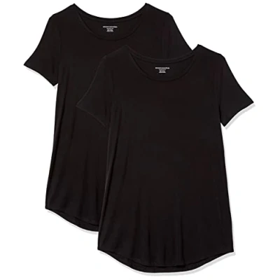 Amazon Essentials Women's Short Sleeve Scoopneck Tunic, Pack of 2, Black, S