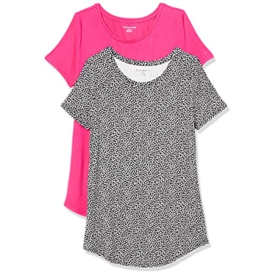 Amazon Essentials Women's Short Sleeve Scoopneck Tunic, Pack of 2, Black Tulips/Bright Pink, S