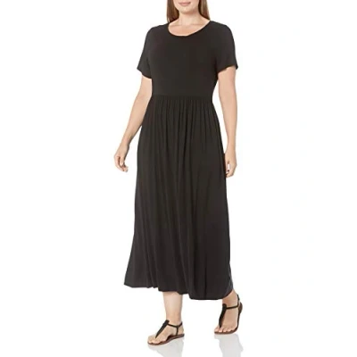 Amazon Essentials Women's Short Sleeved Waisted Maxi Dress (Available in Plus Sizes), Black, S