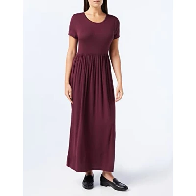 Amazon Essentials Women's Short Sleeved Waisted Maxi Dress (Available in Plus Sizes), Burgundy, S