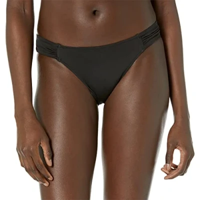 FIT: Bikini style panties sit at the low hip with full back coverage SWIM STRETCH FABRIC: Soft and breathable quick-dry knit swim fabric with 4-way stretch for movement and comfort SIDE TAB BIKINI BOTTOM: Swim essential designed for stylish comfort at the beach or pool DETAILS: Ruched side detailing, elasticated waist and leg opening for flexibility and comfort. Full internal lining for added coverage