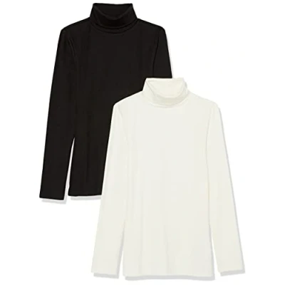 Amazon Essentials Women's Slim fit Long Sleeved Knitted Rib Turtleneck Top for Layering (Available in Plus Size), Pack of 2, Eggshell White/Black, XS