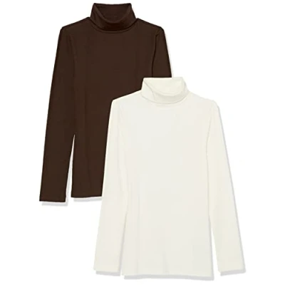 Amazon Essentials Women's Slim fit Long Sleeved Knitted Rib Turtleneck Top for Layering (Available in Plus Size), Pack of 2, Espresso/White, L