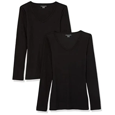 Amazon Essentials Women's Slim fit Long Sleeved Knitted Rib V Neck for Layering (Available in Plus Size), Pack of 2, Black, S