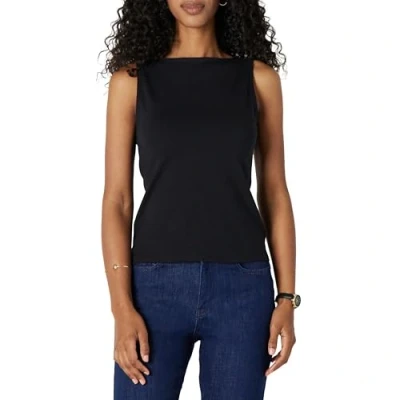 Amazon Essentials Women's Slim Fit Rib Knit Boatneck Layering Tank Top, Black, L