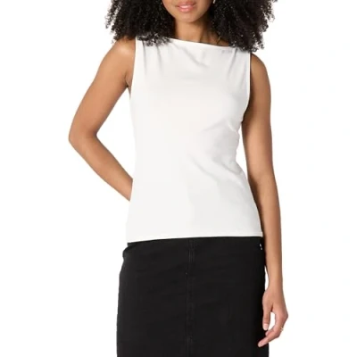 Amazon Essentials Women's Slim Fit Rib Knit Boatneck Layering Tank Top, White, S