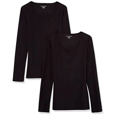 Amazon Essentials Women's Slim Fit Ribbed Scoop Neck Jumper (Available in Plus Size), Pack of 2, Black, S