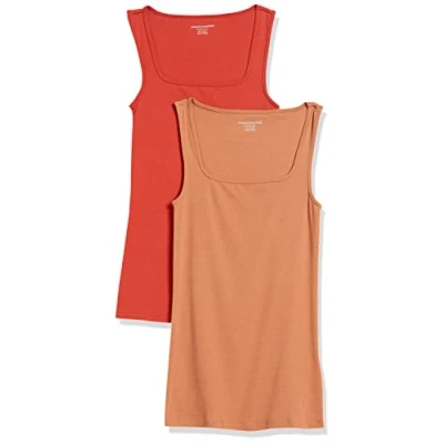 Amazon Essentials Women's Slim Fit Square Neck Tank, Pack of 2, Brick Red/Light Caramel, XXL