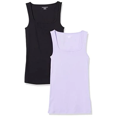 Amazon Essentials Women's Slim Fit Square Neck Tank Top, Pack of 2, Black/Lavender, S
