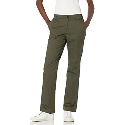 Amazon Essentials Women's Slim Fit, Straight Leg Stretch Twill Chino Trouser, Dark Olive, 14