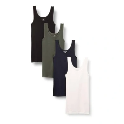 Amazon Essentials Women's Slim fit Tank, Pack of 4, Black/Dark Olive/Navy/White, XL