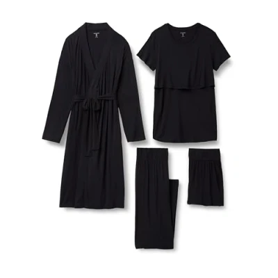 Amazon Essentials Women's Soft Modal Nursing Maternity Sleepwear Pyjama Bundle, 4 Piece, Black, S