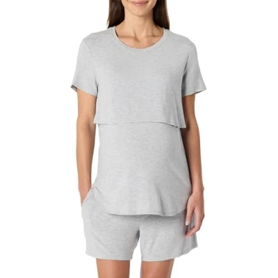 Amazon Essentials Women's Soft Modal Nursing Maternity Sleepwear Pyjama Set, Medium Grey Heather, S