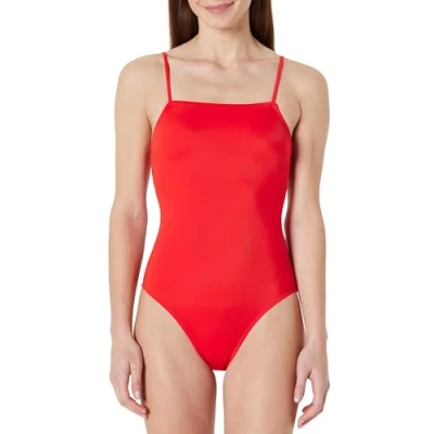 Amazon Essentials Women's squareneck one piece swimsuit, Bright Poppy Red, 14