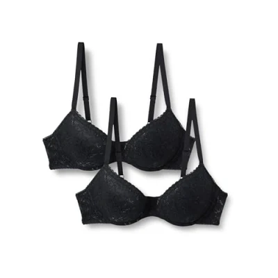 Amazon Essentials Women's Stretch All over lace Lined Push up Bra, Pack of 2, Black, 32B